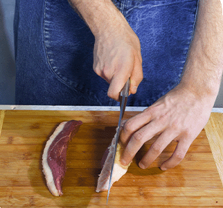 - Découpez tout le magret en tranches de 2 cm dans le sens de la largeur.