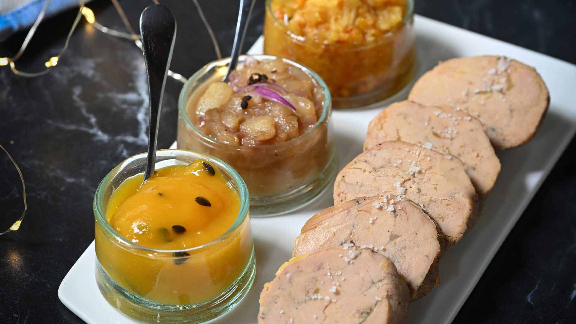 Laissez-vous surprendre par l’alliance parfaite du foie gras et des fruits. Les confits, sucrés et doux, et les chutneys, épicés et avec une pointe d’acidité, sont les accompagnements de choix. Ajoutez une touche sucrée/salée à votre dégustation en déposant une cuillerée de chutney ou de confit sur vos tranches : oignons, figues, abricots, mangue, passion…