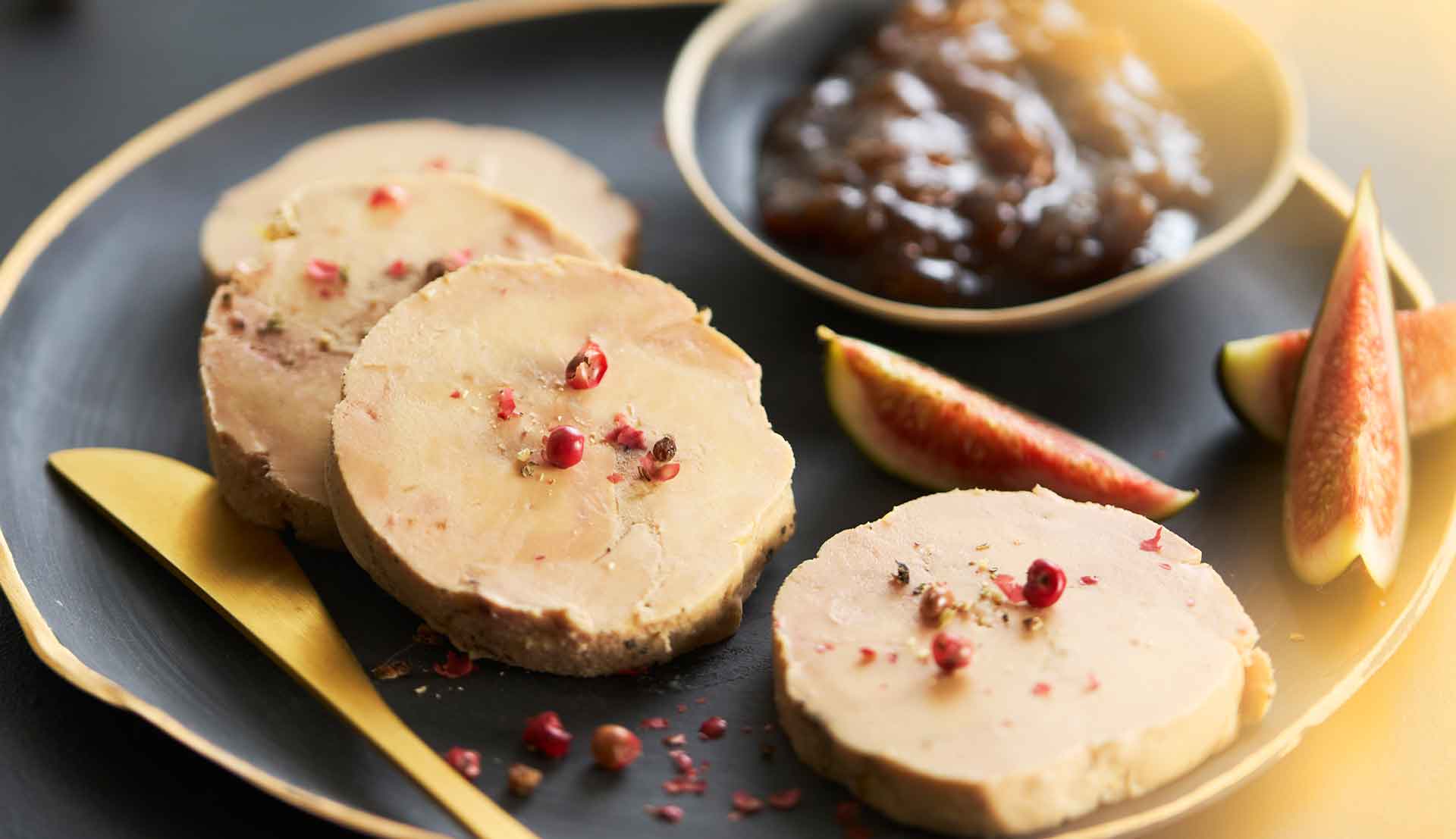 5. Déposez dans chaque assiette 2 tranches de foie gras.